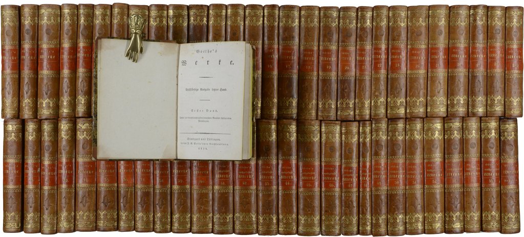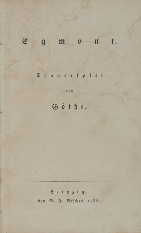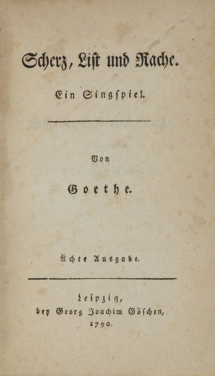Goethe selbst besprach den Gedichtband wohlwollend und unter Empfehlung an die Musiker in "Über Kunst und Alterthum", Band 3 (1822). - Gelöschter zeitgenössischer Besitzeintrag auf fliegendem Vorsatz, gering fleckig, einige Blatt an der oberen Ecke leicht geknickt. Druck auf kräftigem Papier. - Schönes Exemplar in einem dekorativen Einband und mit Marmorpapiervorsätzen.