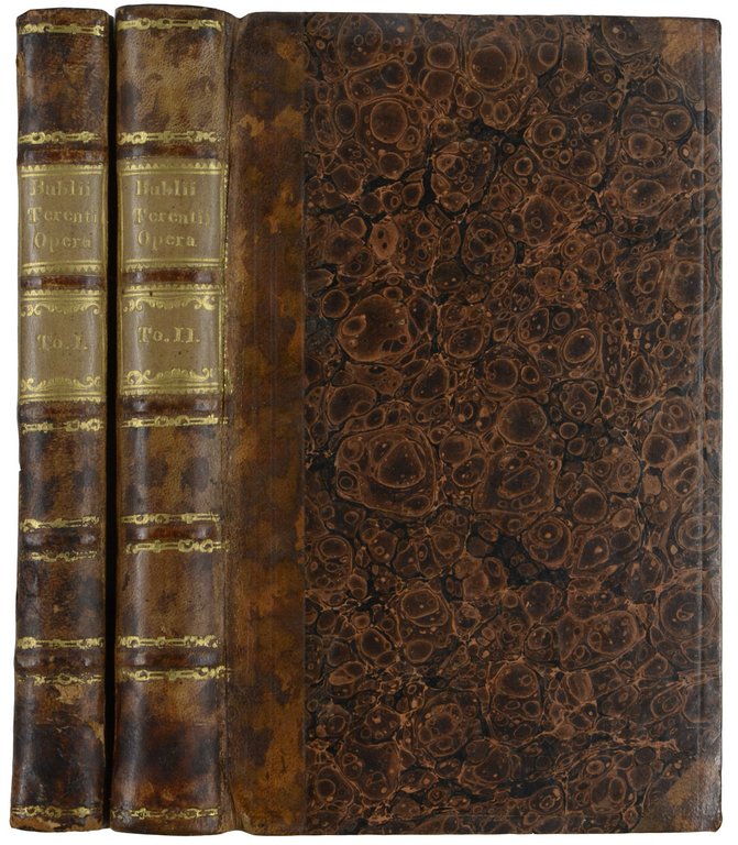 ALTPHILOLOGIE - TERENTIUS, Publius. Comodiae sex. Novissime recognitae, cum selecta varietate lectionum et perpetua annotatione... 2 Bände. Zweibrücken, Typographia Ducali, 1779-1780. 8°. 2 nn. Bl., XXXVI, 346; XIII, 431 S., mit 2 gestochenen Titelvignetten und 1 gestochenen Portraitvignette. Halbleder der Zeit mit leichter Rückenvergoldung und Rückenschildern, (leicht beschabt und gering fleckig). € 130,00