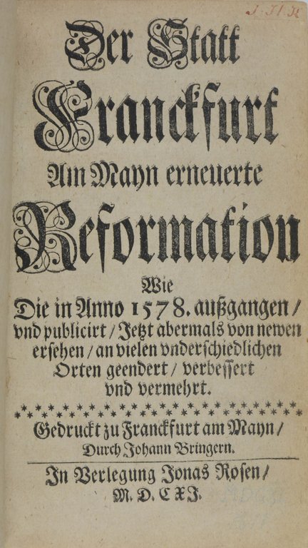 VD 17 3:002927 F; ADB 44, 685. - Erste gemeinsame Ausgabe der beiden erstmals 1586 und 1593 erschienenen Schriften des Juristen Zanger (1557-1607). Die vielfach bis 1730 immer wieder aufgelegten Schriften zu Verhör und Einrede behandeln besondere Rechtsfälle und berichten auch über die hochnotpeinliche Befragung sowie über Unholde, Zauberer, Hexen, Räuber, Diebe und Verräter. Der lateinische Text ist häufig mit deutschen Einschüben versehen. - Der Einband mit einem Plattenstempel der Justitia in höfischer Kleidung (vorn) und dem Selbstmord der Lucretia (hinten). - Titel in Rot und Schwarz. - Gering gebräunt und vereinzelt leicht fleckig. Vorsatzblatt und Titel mit kleiner Wurmspur. - Gutes Exemplar in einem dekorativen Einband.