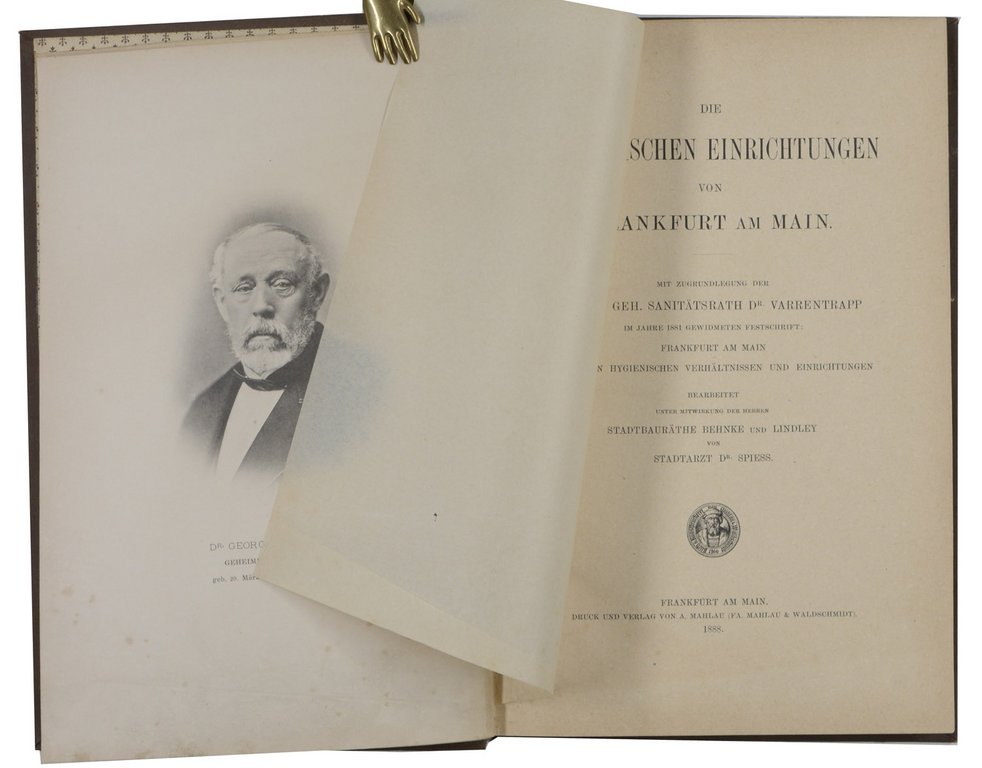 Seltene Festgabe zum 1. Sängerfest der Mozartstiftung in Frankfurt am Main. - Beinhaltet das Festprogramm, diverse Lieder, Dichtungen, Noten und Statuten. Die Tafeln mit 2 Illustrationen, sowie einem Notenblatt. - Die Illustration des Vorderumschlags zeigt ein das Innere der Katharinenkirche, in der das Eröffnungskonzert stattfand. Der Rückumschlag mit einer Ansicht des Forsthauses im Frankfurter Stadtwald. - Die Mozartstiftung Frankfurt existiert bis heute und unterstützt junge Komponisten. - Bindung gelockert, leicht stockfleckig.