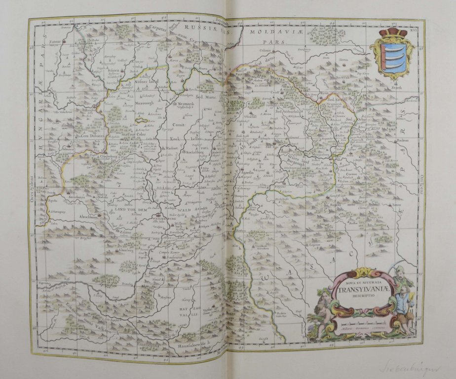 Erste und einzige Ausgabe. - Koemann II, Me 183. - Die 2 vorliegenden Bände beinhalten den vollständigen Deutschlandteil unter Einschluss der damals zum Hl. Römischen Reich gehörenden Gebiete wie, Böhmen, Österreich, Ungarn und Transylvanien. - Das nach dem 4. Band eingestellte Projekt eines englischsprachigen Atlasses basierte auf der Grundlage des "Atlas Major" von Janssonius, dessen Karten etwas überarbeitet wurden. Es finden sich jedoch auch einige Karten, die sonst nirgendwo erschienen sind, darunter die schönen Faltkarten von der Wesermündung und Baden. - Eine Karte mit Einriss, im Bug teils etwas knickfaltig, wenige Karten etwas angerändert, die Weserkarte leicht beschnitten, Ex-Libris auf Innendeckel. - Insgesamt innen sehr gutes, breitrandiges, nur minimal fleckiges Exemplar mit kolorierten Kartuschen.