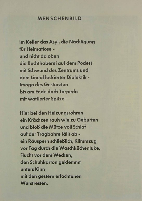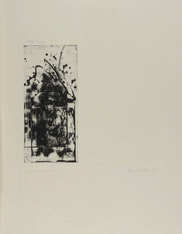 Fünfter Druck der Sisyphos-Presse, herausgegeben von Elmar Faber. - Eins von 300 nummerierten Exemplaren (Nr. 114) für den Handel, insgesamt 330 Exemplare. - Druck der Radierungen auf einem Popset-Papier aus dem Hause Arjomari, Paris. - Die Gesamtgestaltung lag in den Händen von Friederike Pondelik. - Sehr schönes Exemplar.