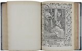 EINBAND - FORE EDGE PAINTING - LUDOLPHUS DE SAXONIA. Vita Christi, ex evangeliis et scriptoribus. Adiacto indice novo, & non vulgari. Paris, Claudius Chevallon, 1534. Folio. 32 nn., 396 num. Bl., Mit Holzschnitt-Druckermarke auf dem Titel und zahlreichen Holzschnitt-Initialen. Bemalter Pergamentband des 19.Jahrhunderts mit aufmontierter goldgeprägter Lederbordüre auf dem Vorderdeckel und goldgeprägten Lederapplikationen auf dem Rücken, Innenkantenvergoldung, mit 3-seitiger farbiger Malerei auf dem Schnitt, (etwas beschabt). € 2.200,00