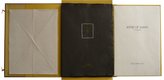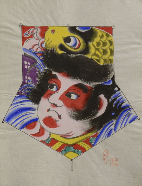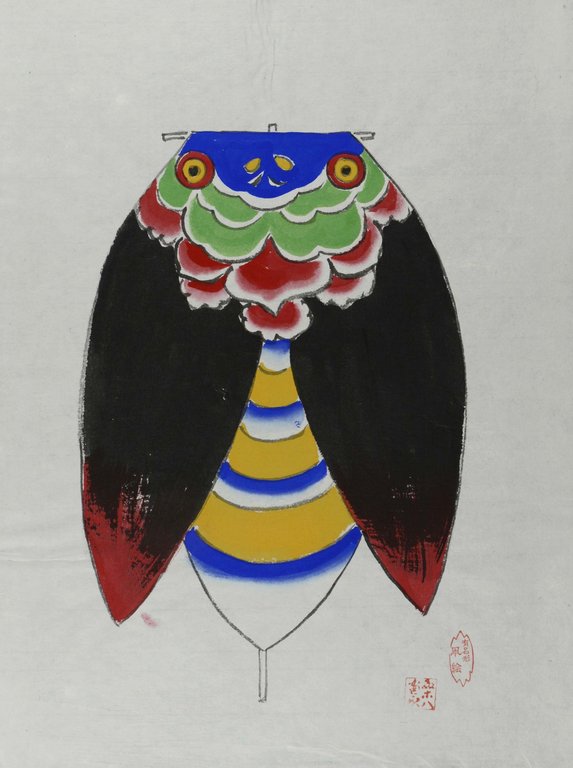 DRACHENBAU - TATSUSABRO, Kato. Kites of Japan. A vanishing art. Original kite painting by Tatsusabro Kato. Tokyo, Unida, 1971. Fol. 6 nn. Bl., mit 18 handgezeichneten farbigen mit Siegel signierten Tafeln jeweils in einem schwarzen bezeichneten und mit einer Umrisszeichnung versehenen schwarzen Papierumschlag und 1 Originaldrachen. Papiermappe in Originalleinenmappe mit 2 Schließen, (etwas verblasst). € 1.600,00