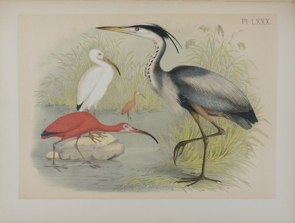 Erste Buchausgabe. - Nissen IVB 473 (Jasper).; Sitwell 145. - Ursprünglich ab 1874 in Lieferungen erschienenes Werk zur Ortnithologie Nordamerikas. - "This is a great favourite, and has appeared in several editions..." (Anker S. 80). - Die schönen großformatigen Tafeln nach Zeichnungen von Theodore Jasper zeigen Vögel und Vogelgruppen in verschiedenen Landschaften. Insgesamt werden mehr als 700 Vogelarten dargestellt. - Wenige Seiten und Tafeln gering fleckig. Modernes Ex-Libris auf Innendeckel. Sehr gutes Exemplar.