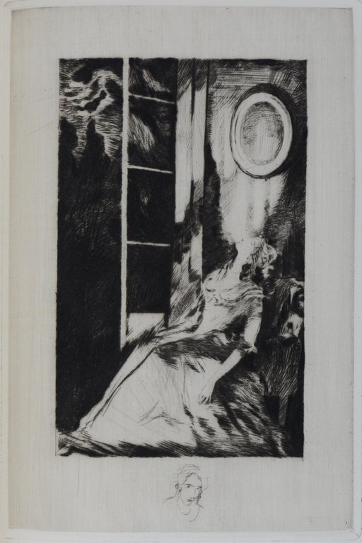 4) Federlithographie "Aetatis suae Anno LX". Selbstporträt im Alter von 60 Jahren mit handschriftlichem Dank an Alwine Möslinger.