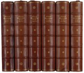 MOLIERE, (Jean-Baptiste). Sämtliche Werke. Übersetzt von M.Beutler, H.Conrad, J.Kafka, u.a. Mit einer Einführung von Wilhelm Friedmann. Herausgegeben von Eugen Neresheimer. 6 Bände. Berlin, Propyläenverlag, o.J. (um 1920). 8°. Mit zahlreichen Tafeln nach Kupferstichen. Originalleder mit goldgeprägter Rücken- und Deckelbordüre, Rückentiteln, Innenkantenvergoldung und Goldschnitt, (minimal beschabt, gering fleckig). € 1.200,00