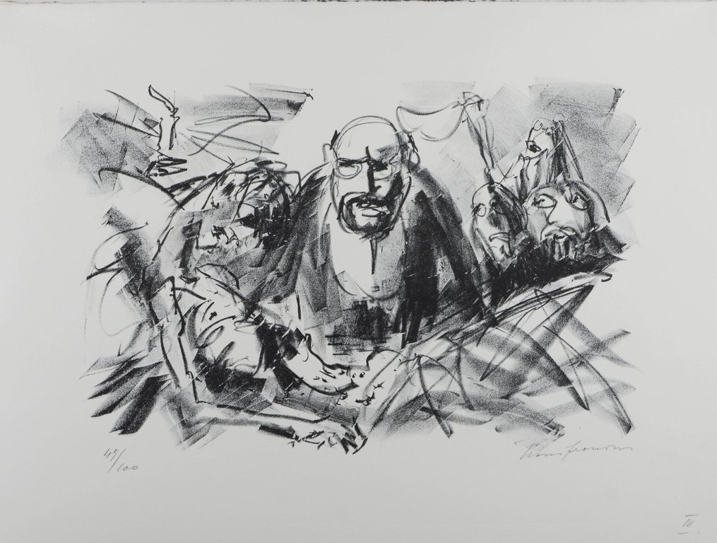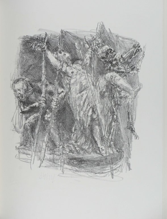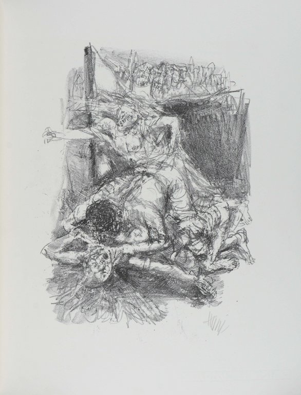HEISIG - BALL, Hugo. Der Henker von Brescia. Drei Akte der Not und Ekstase. Berlin, Sisyphos-Presse Faber & Faber, 1992. Folio. 58 S., 1 nn. Bl., mit 6 signierten Originallithographien von Bernhard Heisig. Originalhalbleinen mit Rückentitel in Originalhalbleinenschuber mit Deckeltitel, (Schuber minimal unfrisch). € 420,00