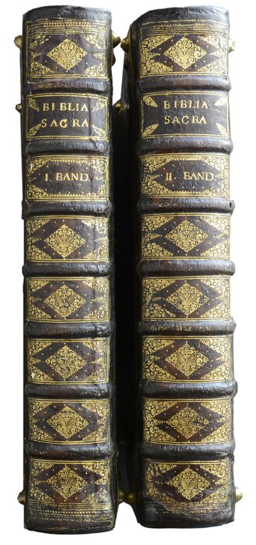 KURFÜRSTENBIBEL - Biblia, Das ist: Die gantze Heilige Schrift, Altes und Neues Testaments. Verteutscht von Herrn Doctor Martin Luther... Dabey über die gewöhnliche, mit Fleiß verbessertte Biblische Register,... Zu End ist auch... die unveränderte Augspurgische Confession mit beygedruckt worden. 2 Bände. Nürnberg, Endters Erben, 1736. Folio. Gestochener Titel, 74 nn. Bl., 740, 512, 480 S., 8 nn. Bl., mit einem Porträt Friedrich III, 11 Kurfürstenporträts, einem Porträt Martin Luthers, 6 Karten und Plänen, 11 Zwischentiteln und 19 (2 doppelblattgroßen) Kupfertafeln. Leder der Zeit über Holzdeckeln mit reicher Rückenvergoldung, Deckelvergoldung, Eckbeschlägen und Barockschließen, gepunzter Goldschnitt, (Gelenke und Kapitale teils unmerklich restauriert). € 4.400,00