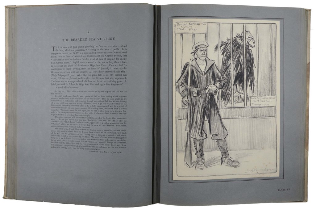 Erste Ausgabe. - Eins von 1000 (insgesamt 1050) Exemplaren. Band 2 vom Künstler handsigniert. - Der niederländische Maler und Karikaturist Louis Raemaekers (1869 – 1956) arbeitete als Zeichner für den Amsterdamer Telegraaf und gehört zu den wichtigsten Karikaturisten aus der Zeit des Ersten Weltkriegs. Seine drastischen und expressiven antideutschen Karikaturen beeindruckten führten bereits 1915 dazu, dass seine Arbeiten vom damals neutralen Holland konfisziert wurden und er nach England emigrieren musste. - 1919 erschien noch ein weiterer, sogenannter "Victory-Volume", der hier nicht vorhanden ist. - Minimal stockfleckig.