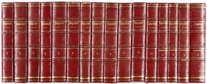 DICKENS, Charles. Ausgewählte Romane und Geschichten. Übersetzt u. herausgegeben von Gustav Meyrink. 16 Bände. München, Albert Langen, 1909-1914. 8°. Mit einem gestochenen Porträt. Originalhalbleder mit Rückenvergoldung und Rückenschildern, (gering beschabt, Rücken etwas verblasst). € 380,00