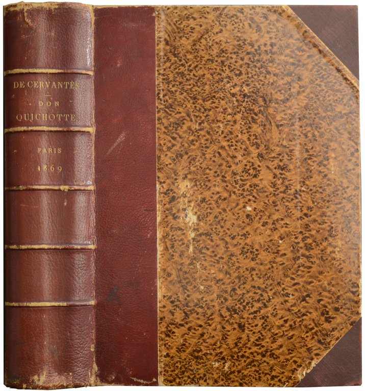 DORE - CERVANTES SAAVEDRA, Miquel de. L'ingenieux hidalgo Don Quichotte de la Manche. Traduction de Louis Viardot. 2 Bände in 1 Band. Paris, Hachette, 1869. Folio. 2 nn. BL., XXIV, 586 S., 1 nn. Bl.; 2 nn. Bl., 636 S., mit 370 Illustrationen im Text und auf Tafeln von Gustav Doré. Halbleder der Zeit mit Rückentitel, (etwas berieben, Ecken und Kanten etwas bestoßen, oberes Kapital etwas eingerissen). € 220,00