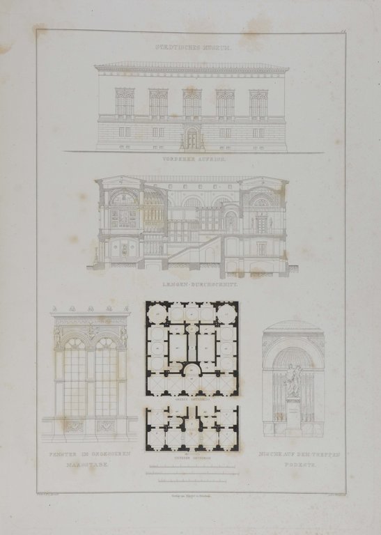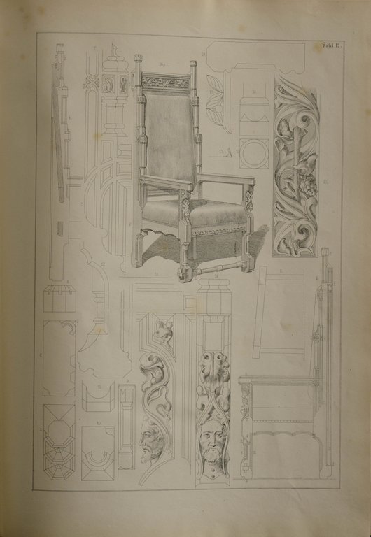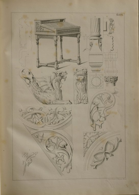 Der deutsche Architekt Georg Gottlob Ungewitter (1820-1864) gehört zu den ersten Vertretern der sogenannten Neogotik in Deutschland. - Die Tafeln mit genauen Entwürfen und Darstellungen verschiedener Möbelstücke sowie dekorativen Details. - Teils stärker stockfleckig.