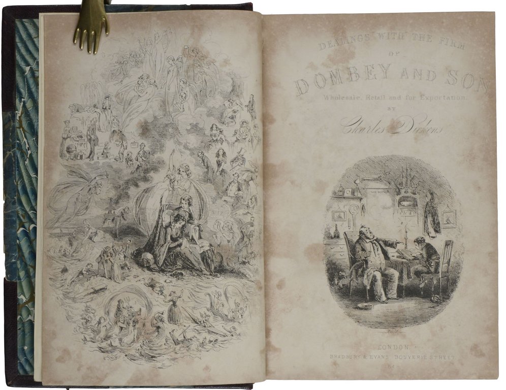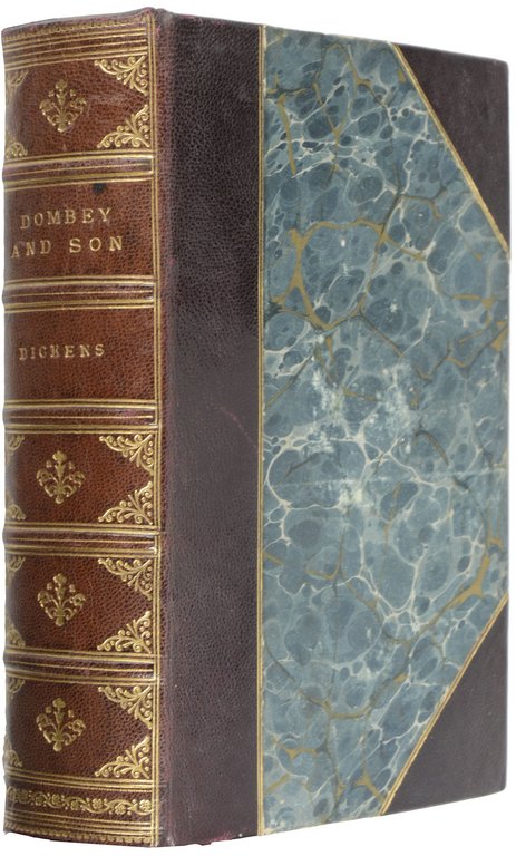 DICKENS, Charles. Dombey and Son. London, Bradbury and Evans, 1848. 8°. Gestochenes Frontispiz, gestochener Titel, XVI, 624 S., mit 47 gestochenen Tafeln von H.K.Browne und einigen anderen. Späteres Halbleder mit reicher Rückenvergoldung und Rückentitel, Kopfgoldschnitt, (gering beschabt). € 780,00
