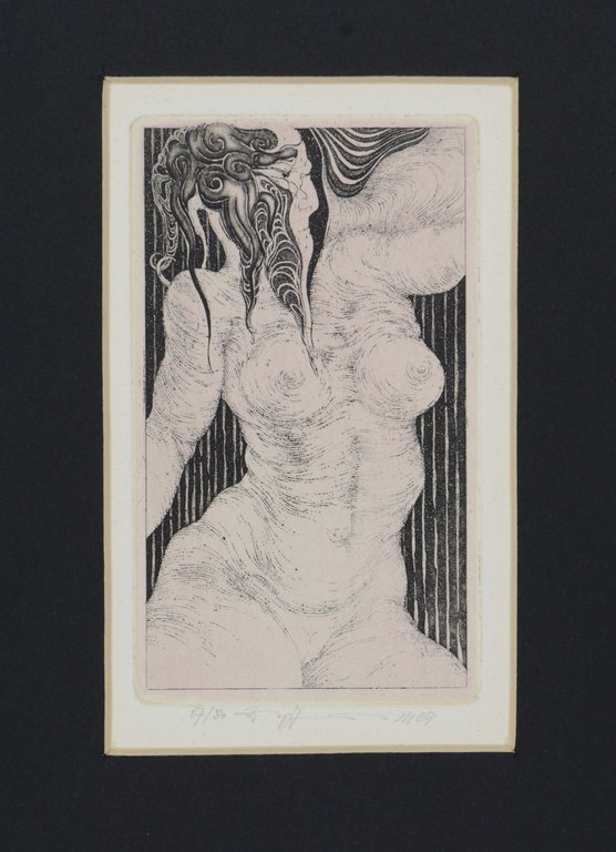 EGGERS, W.P.Eberhard. Humanae Vitae. Zehn Radierungen. Vorwort von Bodo Hedergott. Hildesheim, Schrift und Bild, 1969. Folio. 4 nn. Bl., mit 10 signierten Originalradierungen von Eberhard Eggers. Originalleinenkassette mit eingelassener Deckelillustration, (fleckig und leicht beschabt). € 240,00