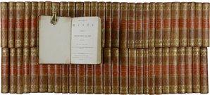Mischauflage, teils in erster und zweiter Auflage, bzw. wurden teilweise lediglich die Titelblätter ersetzt. Einige der Bände auf starkem Papier gedruckt. - Goedeke IV, 1, 342 ff. - Mit den 5 Kupfertafeln und 2 Vignetten von J.D. Heidenreich zu der Abhandlung "Wie die Alten den Tod gebildet" in Band 10. - Minimal stockfleckig, Ex-Libris (Bibliothèque de Rochecotte) auf Innendeckeln. Auf hinterem fliegendem Vorsatz findet sich teilweise das Buchhandlungsschildchen "Antiquariat Conrad Kaldewey, Hamburg". - Ohne den erst 1825 erschienenen Band 31 mit der Biographie Lessings. - Dekoratives Exemplar.