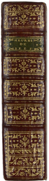 EINBAND - Heures nouvelles, contenant l'office du matin et du soir pour tout les Dimanches & Fêtes de l'année... Imprimées par ordre de Séez. Falaise, Pistel Préfontaine, Paris, de Hansy, 1773. 8°. XLIV, 876 S. Rotes geglättetes Maroquin des 18. Jahrhunderts mit reicher Rücken- und Deckelvergoldung, Steh- und Innenkantenvergoldung, Goldschnitt, (gering beschabt, kleines Wurmloch am hinteren Gelenk). € 780,00