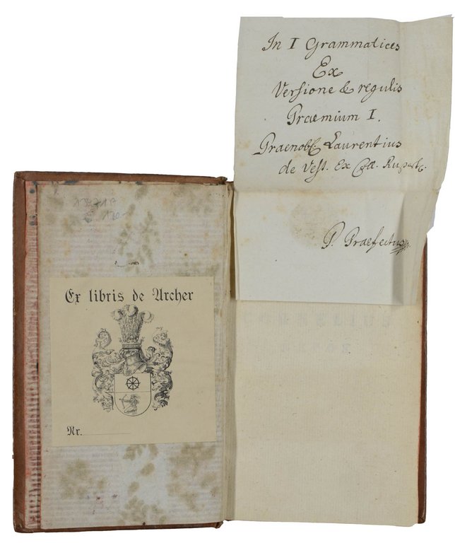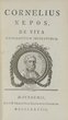 Dekorativer Band mit den Biographien des römischen Geschichtsschreibers. - Die von E.Verhelst gestochene Titelvignette zeigt das Porträt von Miltiades. - Die letzten zwei Blatt mit dem kaiserlichen Druckprivileg. - Minimal stockfleckig. - Ex-Libris (de Archer) auf fliegendem Vorsatz und einem montierten handschriftlichen Schenkungsvermerk (Schulpreis). - Exemplar aus dem Besitz des Fürstbischofs Hieronymus Graf Colloredo (Supralibros), der ab 1772 der letzte regierende Fürsterzbischof des Erzstifts Salzburg war.