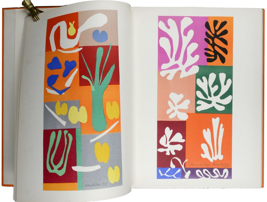 KÜNSTLERBUCH - ZEMKE, Dagmar. Kurs auf Tahiti. O.O., Dagmar Zemke, 2012. Gross-Folio. 10 nn. S., mit 10 (davon 4 doppelblattgroßen) ganzseitigen mehrfarbigen Farblinolschnitten und 7 einfarbigen Linolschnitten von Dagmar Zemke. Originalhalbleinen mit zwei aquarellierten Linolschnitten auf den Deckeln, (minimal unfrisch). € 1.600,00