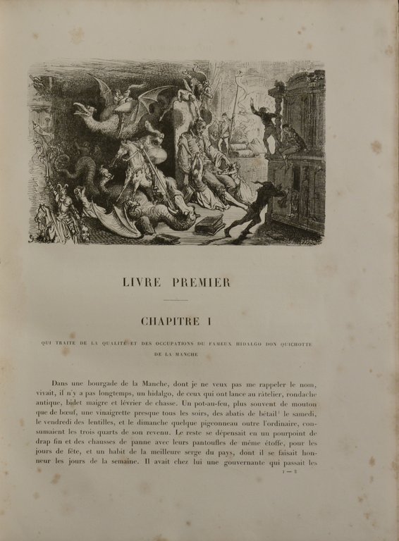 Französische Ausgabe der berühmten Geschichte des Ritters von der traurigen Gestalt mit den Illustrationen von Doré, die erstmals 1863 erschien. - Teilweise stockfleckig.
