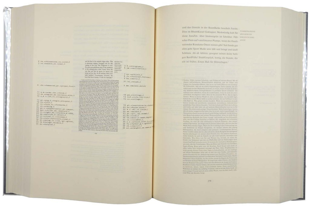 Erste und einzige vollständige deutsche Ausgabe. - Über "Finnegans Wake" dem letzten Werk von James Joyce scheiden sich die Geister. Dem einen gilt es als Meilenstein der Literatur, andere bezeichnen es aufgrund seiner unverständlichen Sprache schlichtweg als Unsinn. - Englisch-deutscher Paralleltext mit Erläuterungen zu den Abkürzungen und Wortgebilden, sowie der Übersetzung. - Sehr schönes, frisches Exemplar.