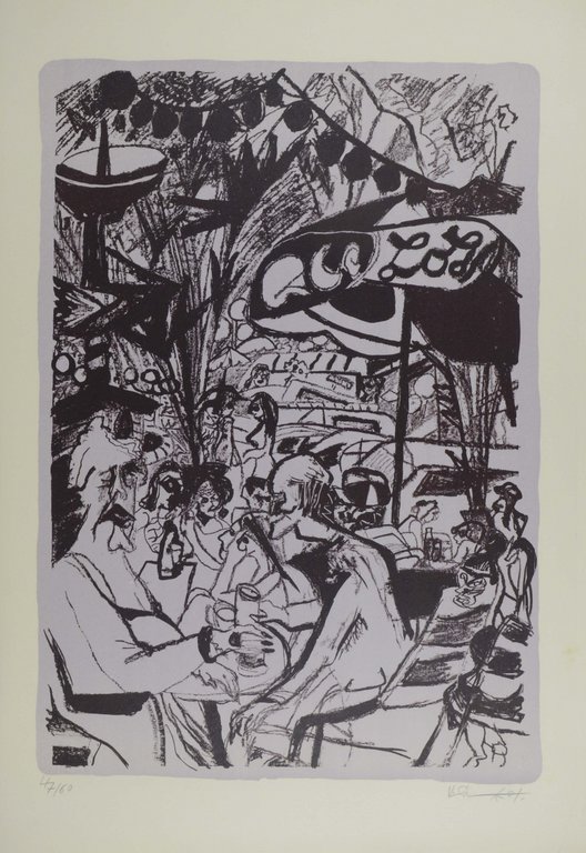 KAFFEEGARTEN - Der Kaffeegarten bei der Ostendhalle in Frankfurt am Main. Ansicht eines Ausflugslokals mit reicher Personenstaffage. Anonyme Lithographie mit Tonplatte. Um 1860. 30 x 44. Hinterlegter Einriss am rechten Rand, bis in die Abbildung reichend. Sehr selten. € 400,00