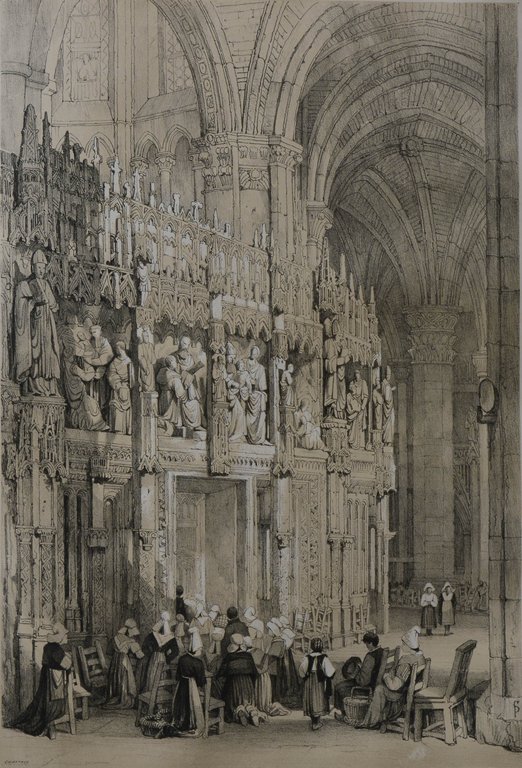 Der französische Lithograph und Aquarellmaler Laurent (Isidore Laurent) Deroy (1797-1886) schuf ab 1827 eine große Anzahl verschiedener lithographischer Ansichten meist nach eigenen Entwürfen, diese jedoch nach einem Entwurf von Nicolas-Marie-Joseph Chapuy (1790-1858). Chapuy arbeitete an einer Reihe von Werken zur Architekturgeschichte sowie illustrierten Reisewerken mit.