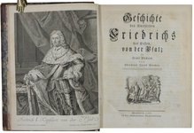 Kupferstich von dem Augsburger Stecher Johann Jakob Ebersbach (1717-1754) nach einer Vorlage von Jakob Friedrich Leclerc (1717-nach 1768). Es handelt sich um eine von 2 großen von ihm geschaffenen Darstellungen der kurpfälzischen Wahl- und Krönungsillumination. (Thieme-B. XXII, 522).