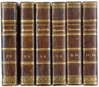 CERVANTES SAAVEDRA, Miquel de. Sämmtliche Romane und Novellen. Aus dem Spanischen von Adelbert Keller und Friedrich Notter. 12 Bände in 6 Bänden. Stuttgart, J.B.Metzler, 1839-1842. Klein-8°. Halbleder der Zeit mit Rückenvergoldung und Rückentitel, (etwas beschabt, Ecken leicht bestoßen). € 240,00