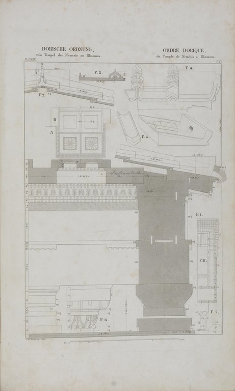Mischexemplar aus den Tafeln und einem Teil des Textes der ersten deutschen Ausgabe von Normand und der ersten kompletten Ausgabe des Werkes von Mauch, das auch als eigenständiges Werk gesehen werden kann. - ADB 20, 685 (Mauch). - Standardwerk zur Architekturgeschichte. - Ohne den gedruckten Titel des Hauptbandes und die Vorrede, sowie die Seiten 29-42 der Beschreibung. - Etwas stockfleckig, Name mit Kugelschreiber auf gestochenem Titel.
