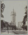 Ansicht des Eschenheimer Turms von Norden. - Carl Hertel (1832-1906) eröffnete 1863 in Mainz ein Photostudio. Beginnend mit Porträtaufnahmen gab er ab 1878 eine Reihe von Photographien von Frankfurt und Mainz heraus. - Nummer 578.
